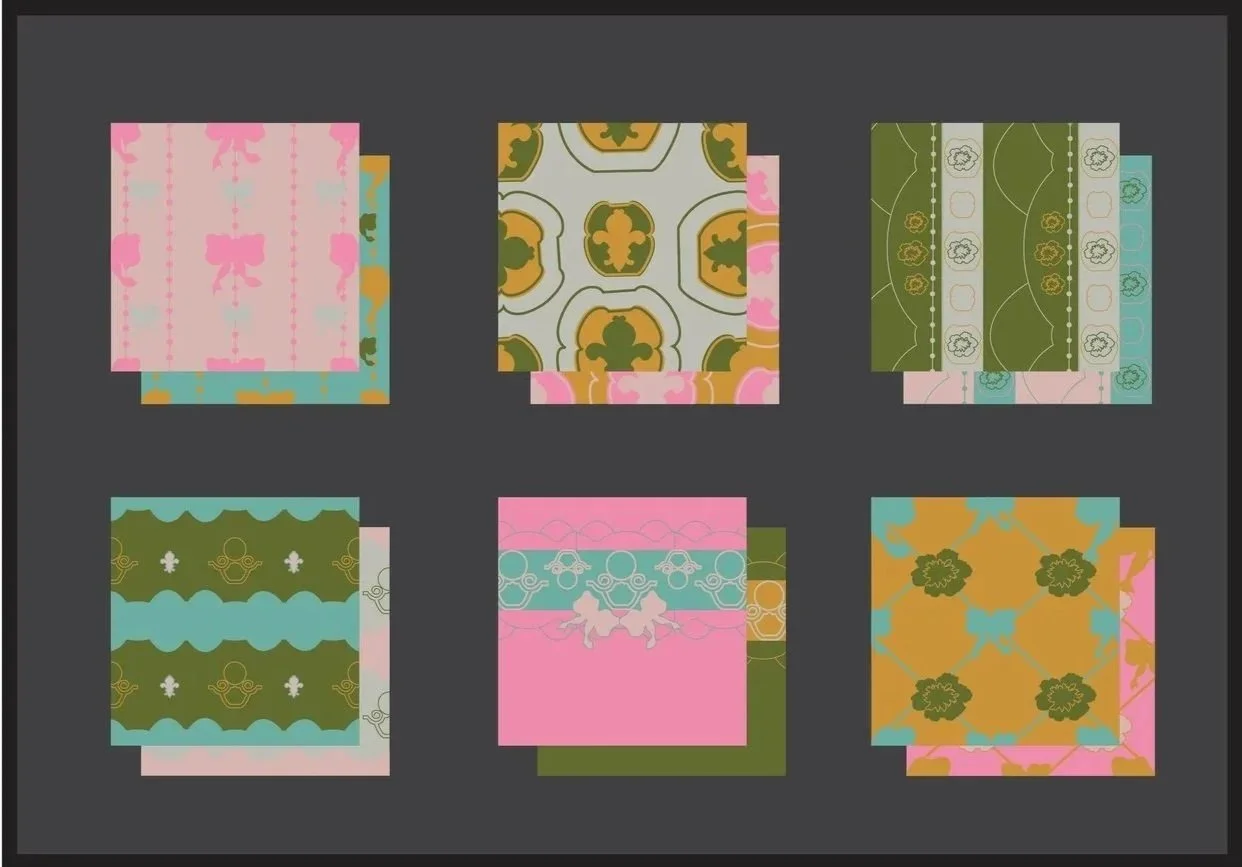Using these motifs and colors, I designed six original repeat patterns, each developed in two distinct colorways, resulting in a total of twelve textile designs. These patterns were created with scalability and product application in mind.